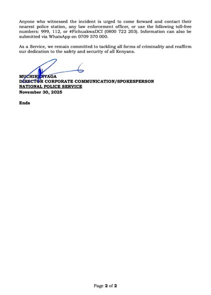 CLARIFICATION ON THEDISTURBANCE AT KARIOBANGI NORTH PCEACHURCH AND A CALL FOR RESTRAINT