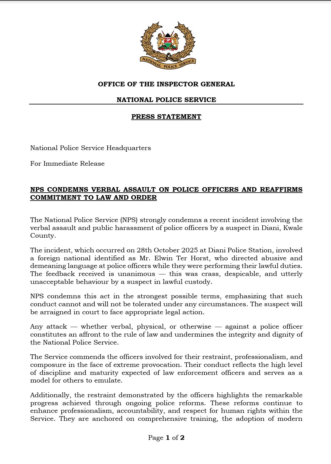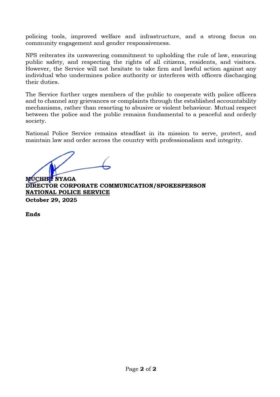 PRESS STATEMENT : NPS CONDEMNS VERBAL ASSAULT ON POLICE OFFICERS AND REAFFIRMS COMMITMENT TO LAW AND ORDER